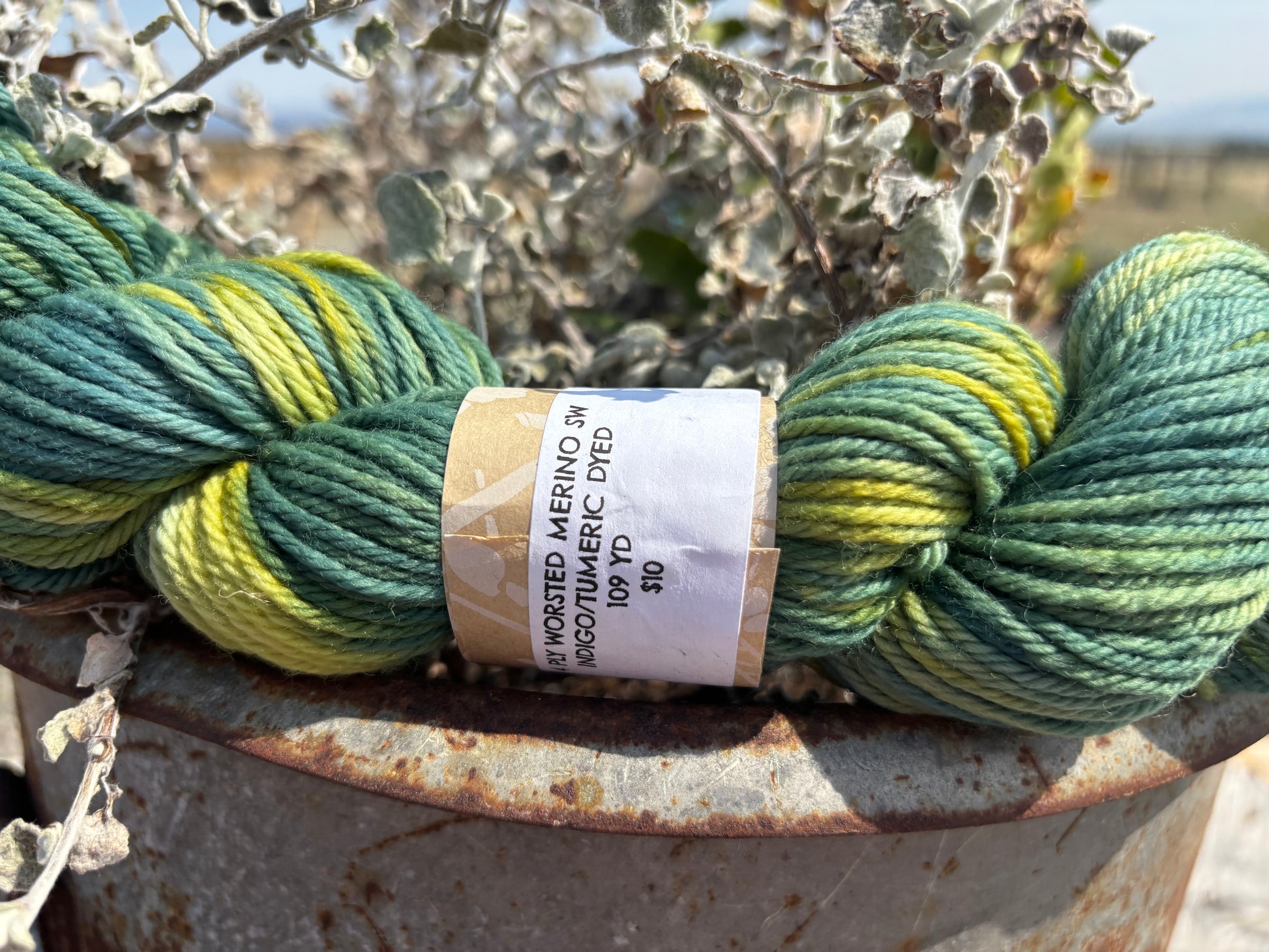 Natural Dyed Yarn Tumeric/Indigo Dyed 4 Ply Worsted Merino 109yds